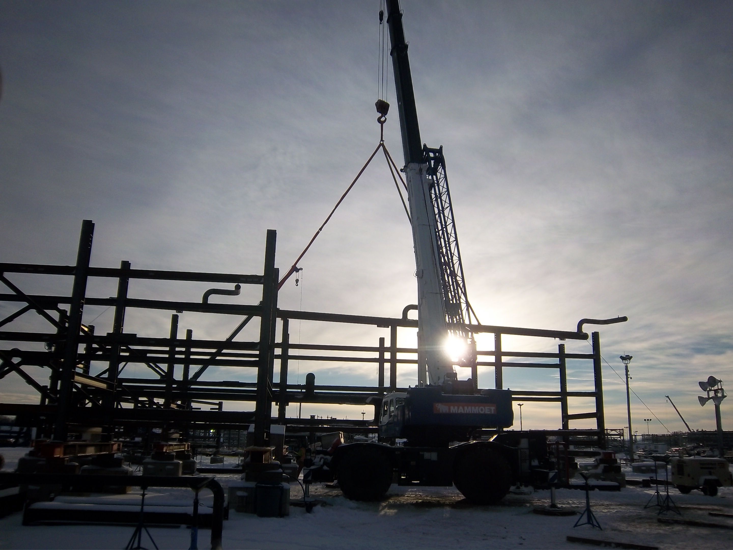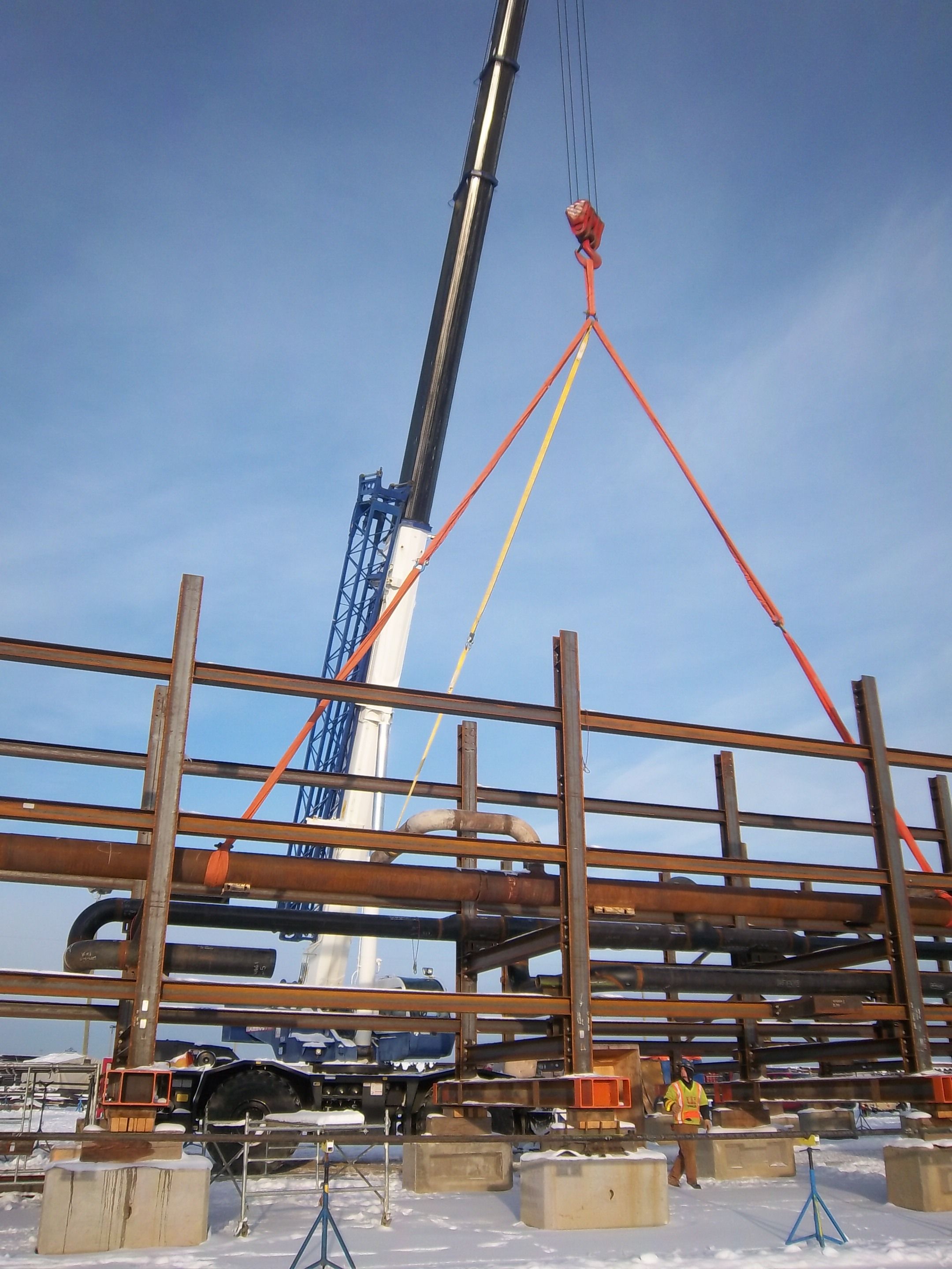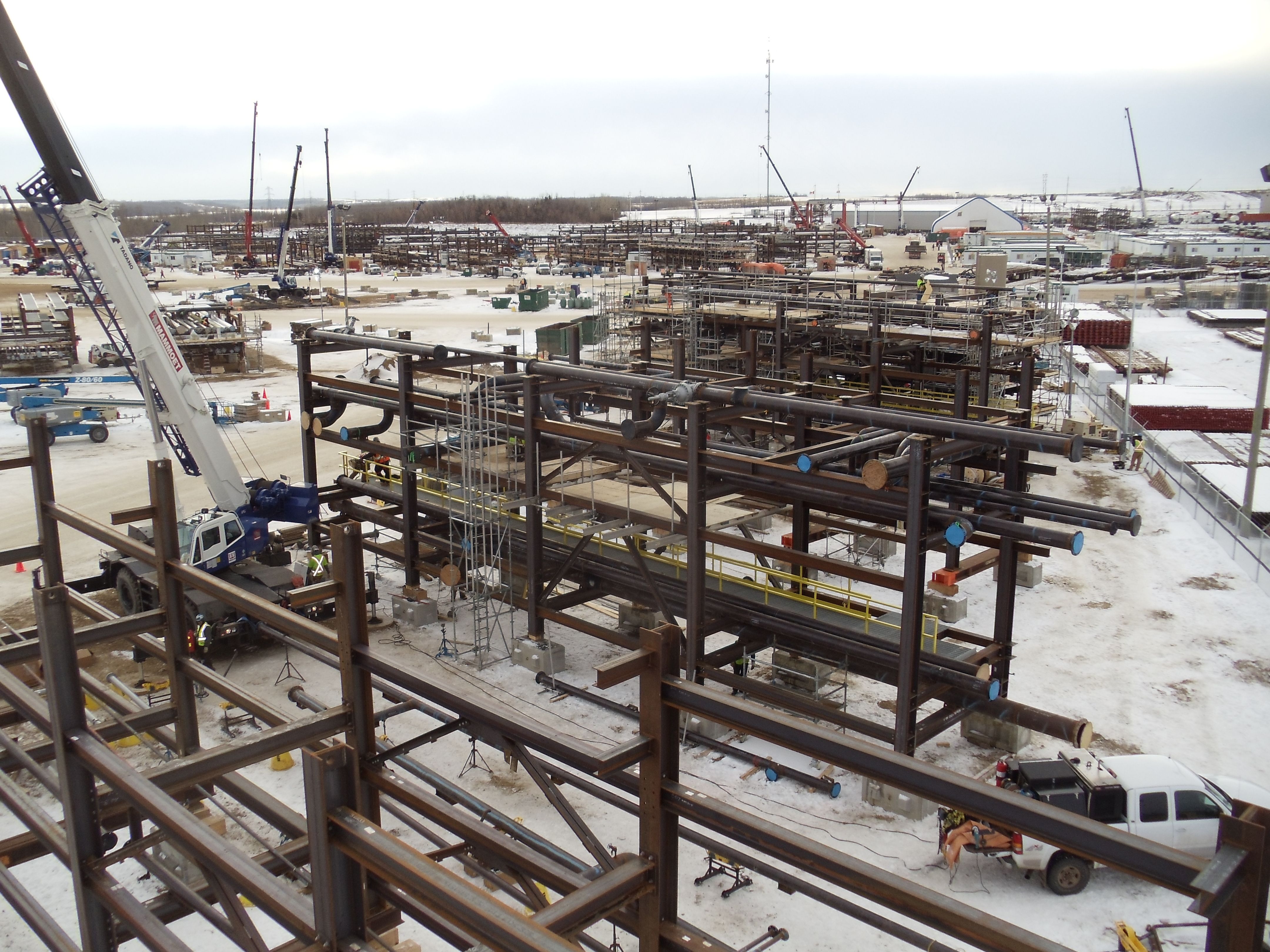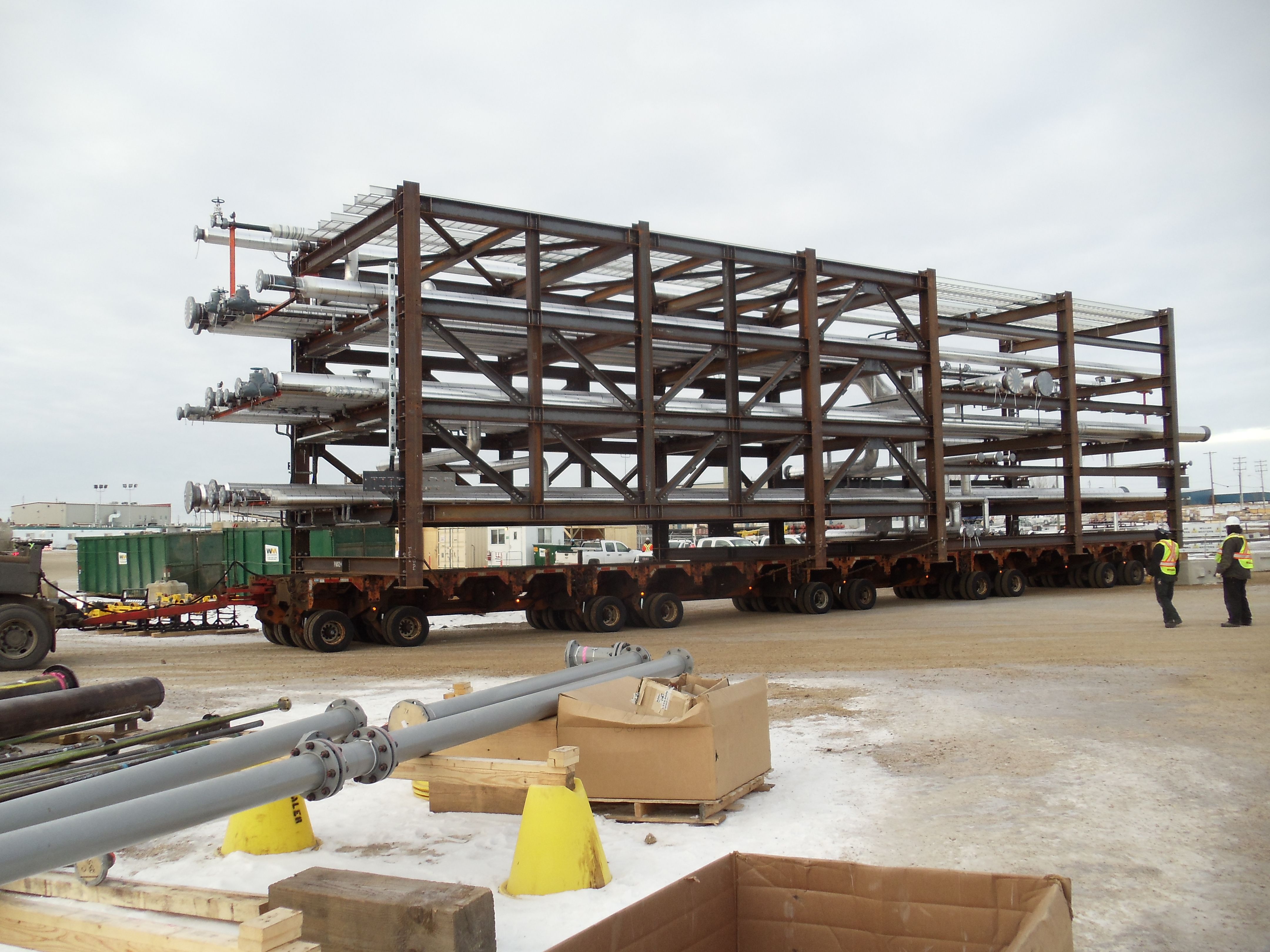 Whaler assembled equipment and pipe rack modules at the Cenovus module yard in Nisku, Alberta. Whaler received, handled and unloaded piping spool, structural steel and equipment to assemble modules. The structural steel consisted of miscellaneous steel members, as well as stairs, ladders, platforms and gratings. Whaler also installed the piping spools, equipment and valves, along with all shoes, guides, anchors, pipe hangers and spring supports and hydro-tests all pipe spools.