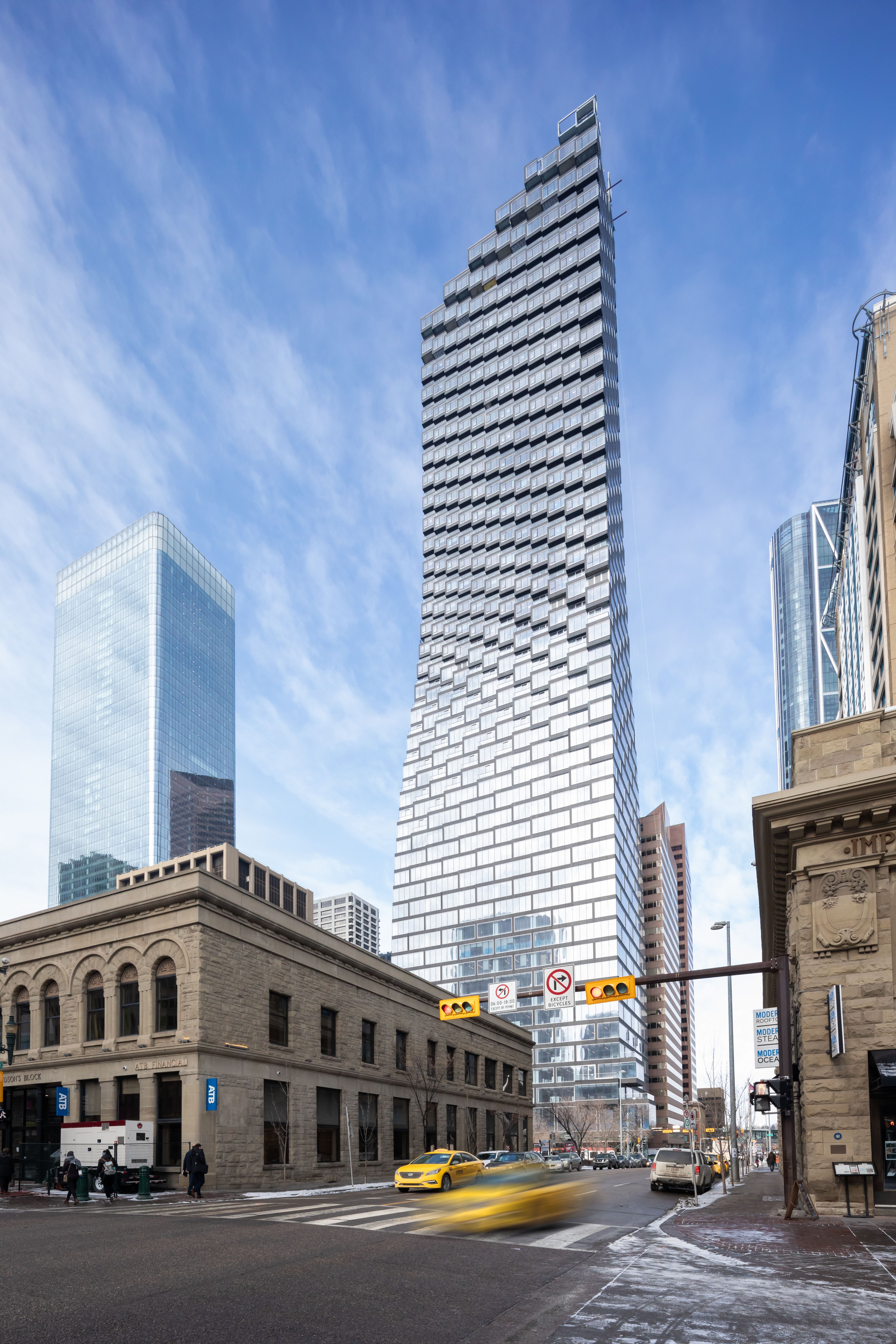 TELUS Sky is a 63-Storey mixed commercial & residential building. It is the 3rd tallest building in Calgary and the 18th tallest building in Canada. The building is cladded with state-of-the-art dynamic LEDs that make the building also a piece of art using the Northern Lights as inspiration.