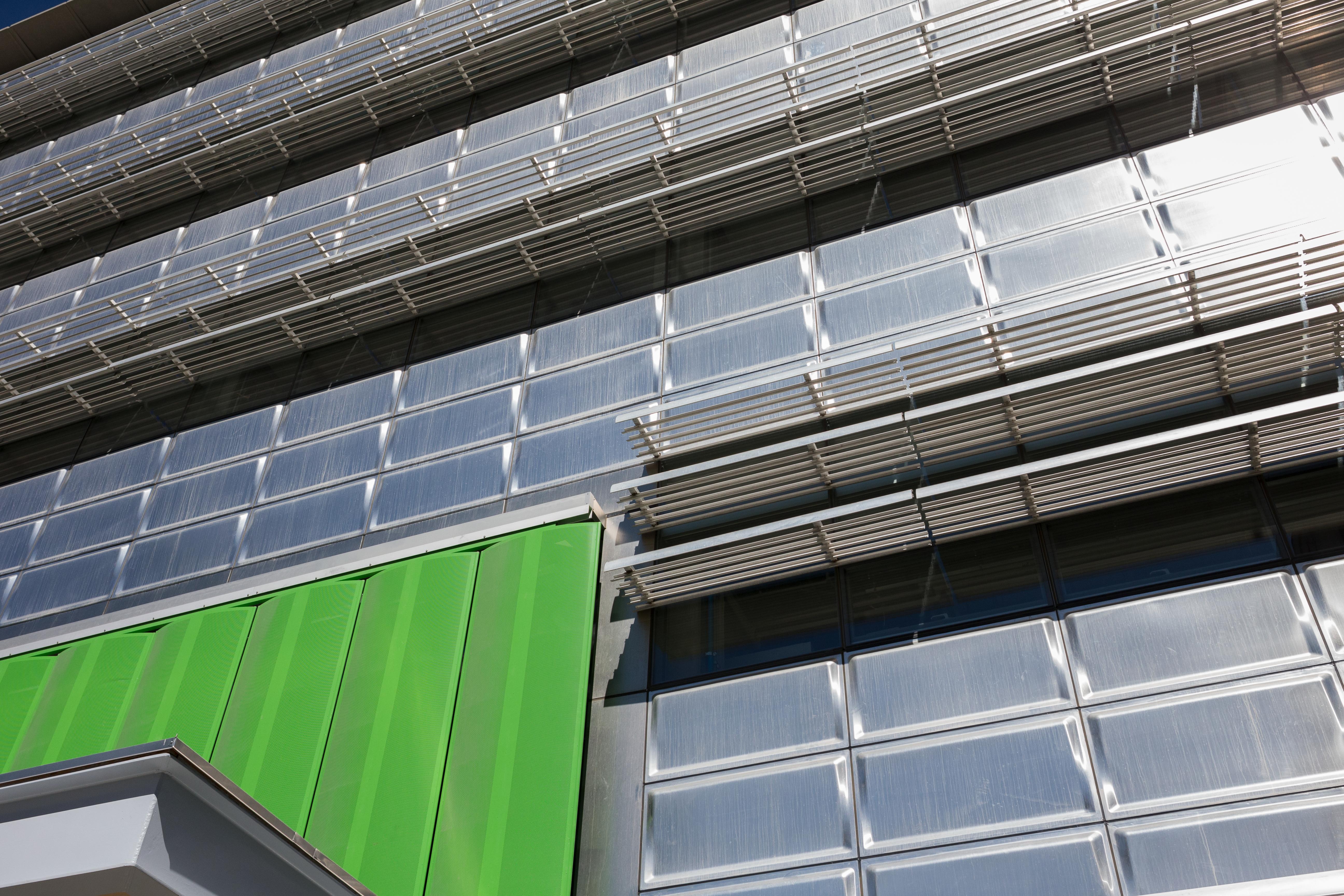 The Energy, Environmental, and Experiential Learning building at the University of Calgary is a 5-Storey facility that provides instructional spaces for programs in energy and environment, and new engineering, biology, and chemistry laboratories. The building uses 78% less energy compared to other conventional laboratory buildings through technologies such as: daylight harvesting, solar shutters/louvres, radiant slab heating, daylight sensors, occupancy sensors, smart timing schedules controlling high efficiency light fixtures, rainwater harvesting, cooling towers, and low flow fixtures.
